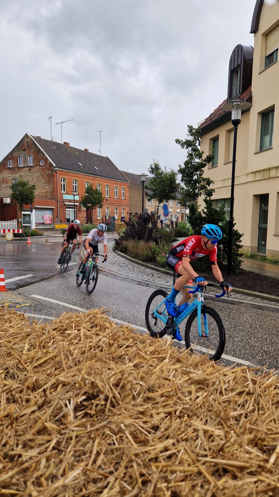 Am Sonntag ging Tim Starker beim City-Rad-Cup in Osterburg an den Start und kämpfte neben dem Sieg auch um eine Prämie für die schnellste Runde. Leider setzte bereits auf der Hinfahrt Dauerregen ein, der erst nach dem Rennen endete. Dieses wurde trotzdem schnell angegangen und kam zum Glück ohne Stürze aus. In der fünften von 20 Runden startete Tim seinen Versuch für die schnellste Runde und gab Vollgas. Eine Vorentscheidung gelang aber erst einige Runden später als ein weiterer Fahrer eine schnelle Runde versuchte. Die zweite Rennhälfte wurde dann zu zweit absolviert und im Zielsprint hatte Tim die besseren Beine. Auch die schnellste Runde konnte er sich sichern.
