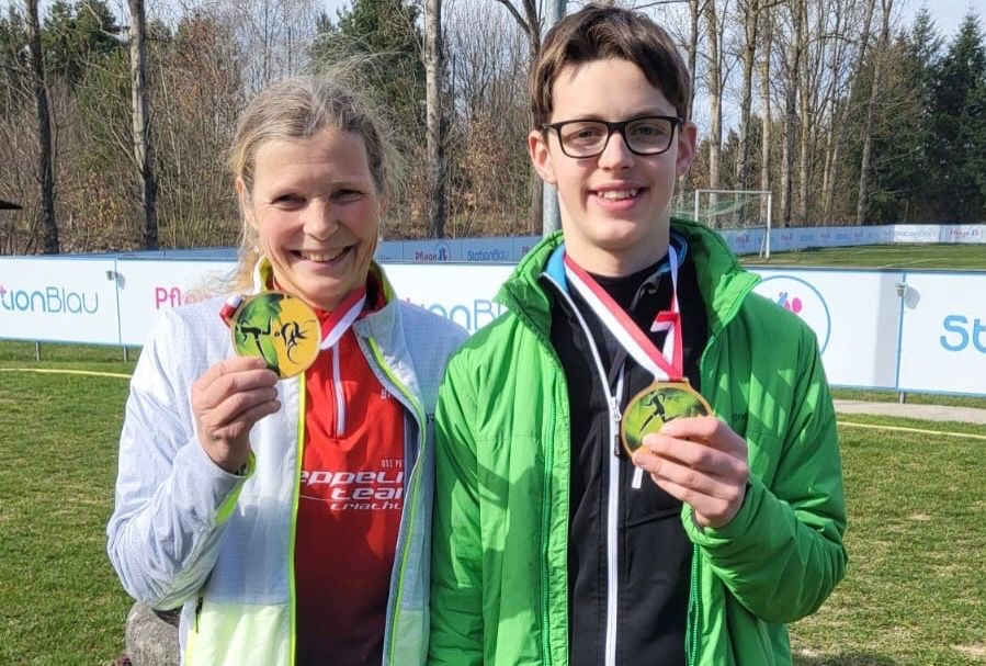 Gerade noch rechtzeitig kam Silke am Wechselgarten an, um Matteo anzufeuern, der bereits auf die 2. Laufstrecke ging! Bei strahlendem Sonnenschein erreichte er über die Distanzen von 2-5-1 km als 3. Junge das Ziel! Mit einer Zeit von 34:15 min erkämpfte er sich damit den Landesmeistertitel in seiner Altersklasse.