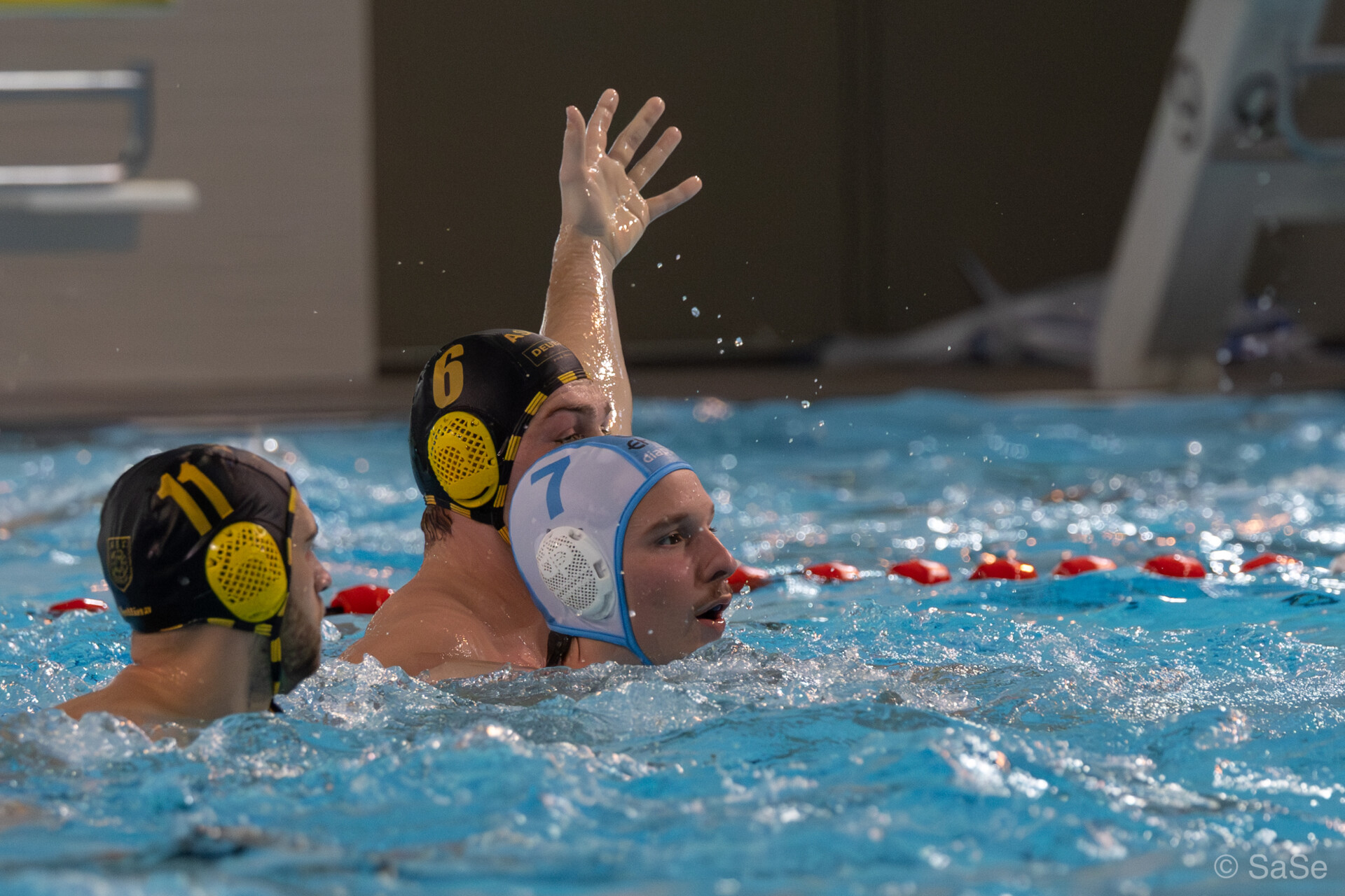 Foto: Der Australier Mason Irving (weiße Kappe) erzielte sechs Treffer im Auswärtsspiel. (Foto: Sandra Seifert)